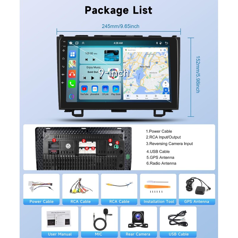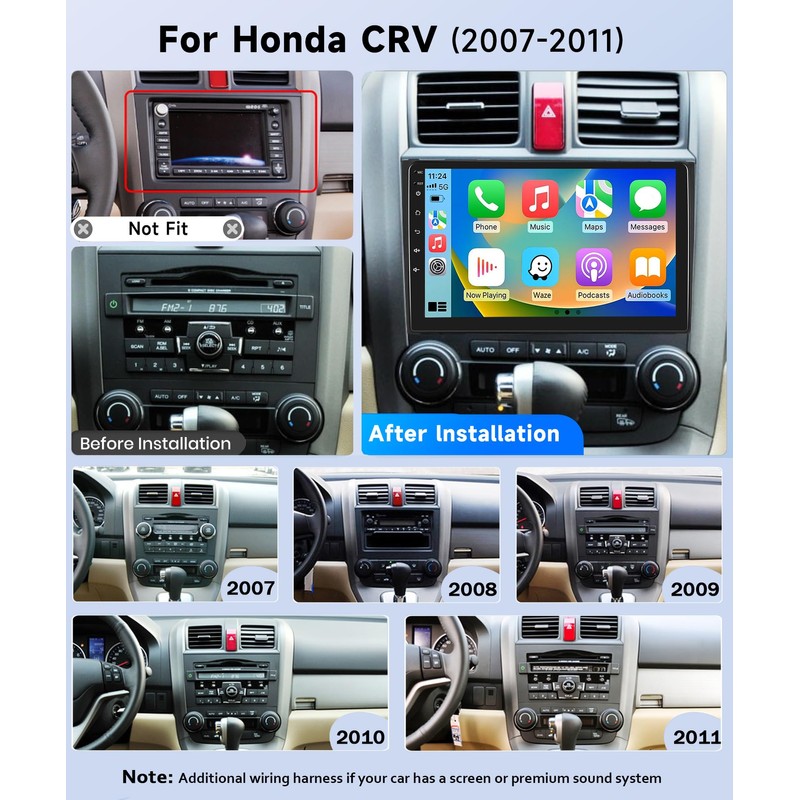 - Wireless CarPlay Android Auto: This 2007 honda crv radio replacement with built-in wireless/wired CarPlay and Android Auto, offering superior voice control for easier access to your phone's music, navigation, messaging, and other features while ensuring safe driving
