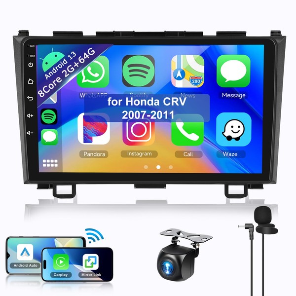 - Newest 8-Core 2G+64G Android 13.0 Car Stereo: Powerful 8core processor head unit for Honda CRV 2007 2008 2009 2010 2011 comes with a plug and play wiring harness, easy to install. With a ultra-high resolution of 1280*720P IPS touchscreen, support split screen, customize home page, multiple UI and wallpaper choose