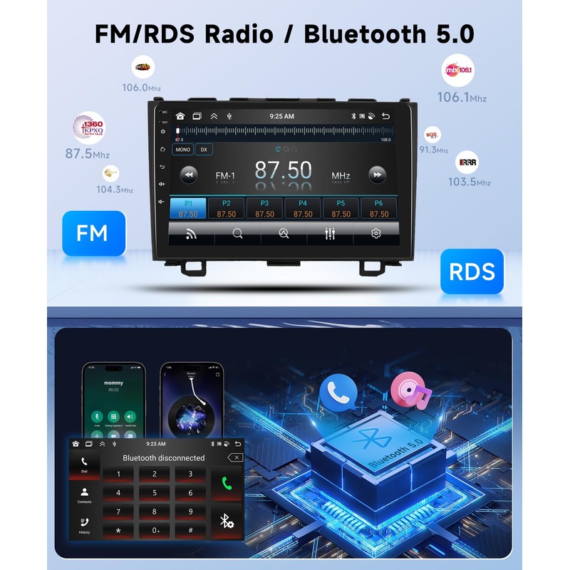 - 32-band DSP, Bluetooth 5.0: The 2008 honda crv radio equipped with a Digital Signal Processor (DSP), offers a 32-band EQ for precise sound adjustment, noise reduction, and enhanced bass for rich audio. The upgraded Bluetooth 5.0 ensures fast, stable connections for seamless music and dependable hands-free calls