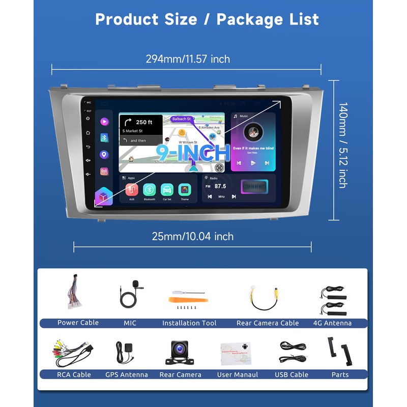- ✅【For Toyota Camry 2006 -2011 models】Android car stereo comes with plug and play wiring harness for easy installation. 9-Inch HD 1080P touch screen, 8 Core+8G RAM+128G ROM memory. Support 1080P Rear Camera (included), DVR, OBD2, Online/Offline Maps,4G, Wi-Fi, AM/FM/RDS Radio,DSP 36-band Equalizer, HI-Res, Bluetooth 5.0, Video/Subwoofer Output, Dual USB, SWC, Voice Control, Split Screen, Multiple UI and Wallpaper Options.