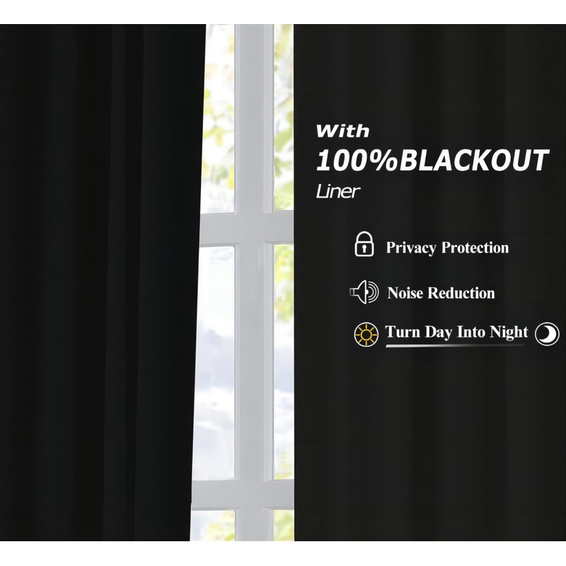 - 100% Blackout: Each linen panel is crafted with a sewn-in 100% blackout coated lining, ensuring superior light blocking,UV prodection,thermal insulation,noise reduction, and totally privacy.Ideal for nurseries,bedroom,and spaces requiring optimal light and temperature control.