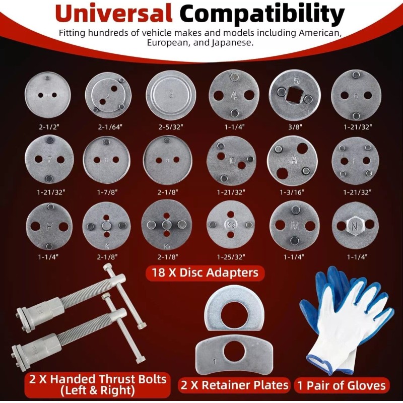 8milelake 24pcs Heavy Duty Disc Brake Caliper Tool Piston Compressor Wind Back Rewind Kit