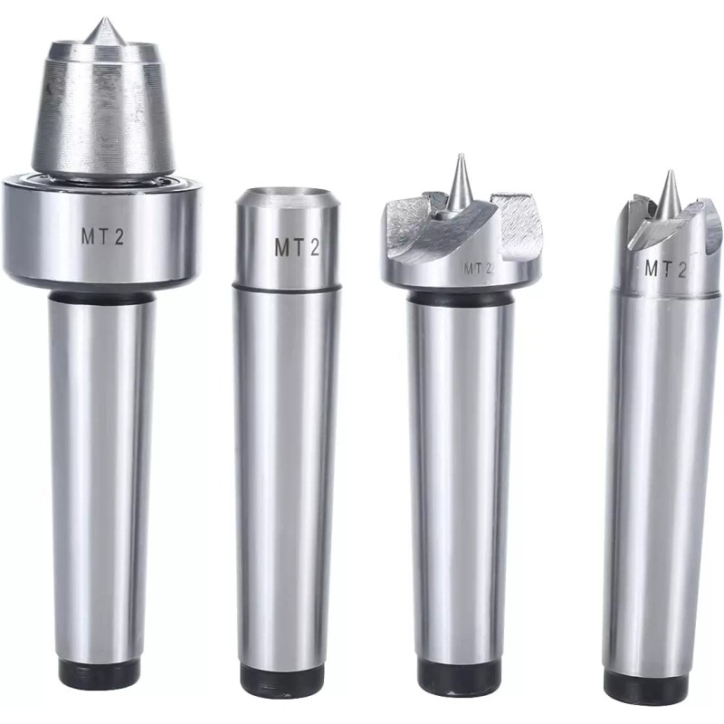 8milelake 4 Pack MT2 Wood Lathe Live Center Set Drive Spur Cup MT2 Arbor for Woodworking
