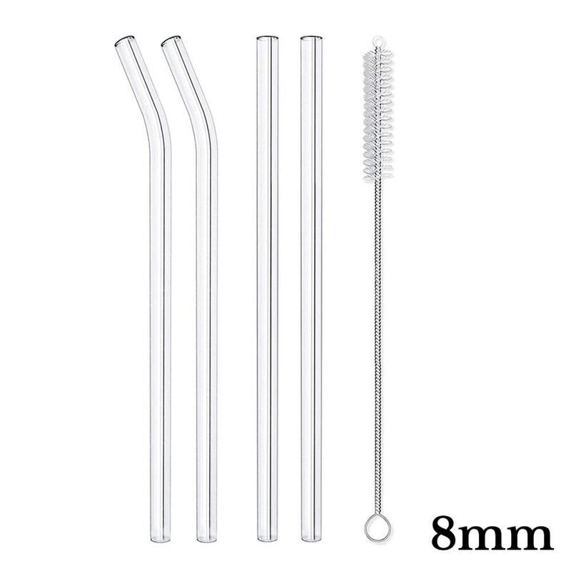 8mm AU 5X Glass Pyrex Drinking Straws Pack Bent Straight Reusable Eco-friendly