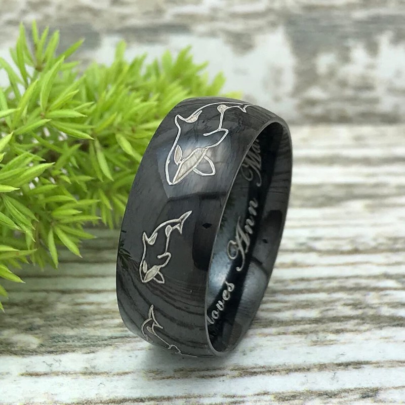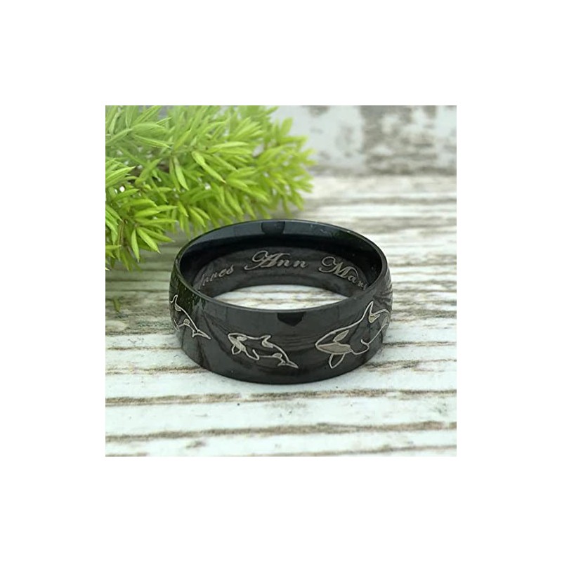 8mm Black Plated Stainless Steel Ring with Engraved Orca Killer Whale Design Sizes 5 to 15 (11)