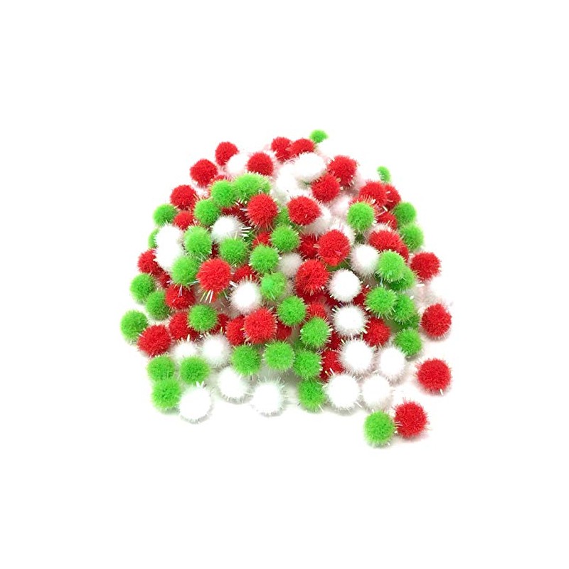 8mm Christmas Mix Glitter Mini Pom Poms Small Fluffy Craft Embellishments (100)
