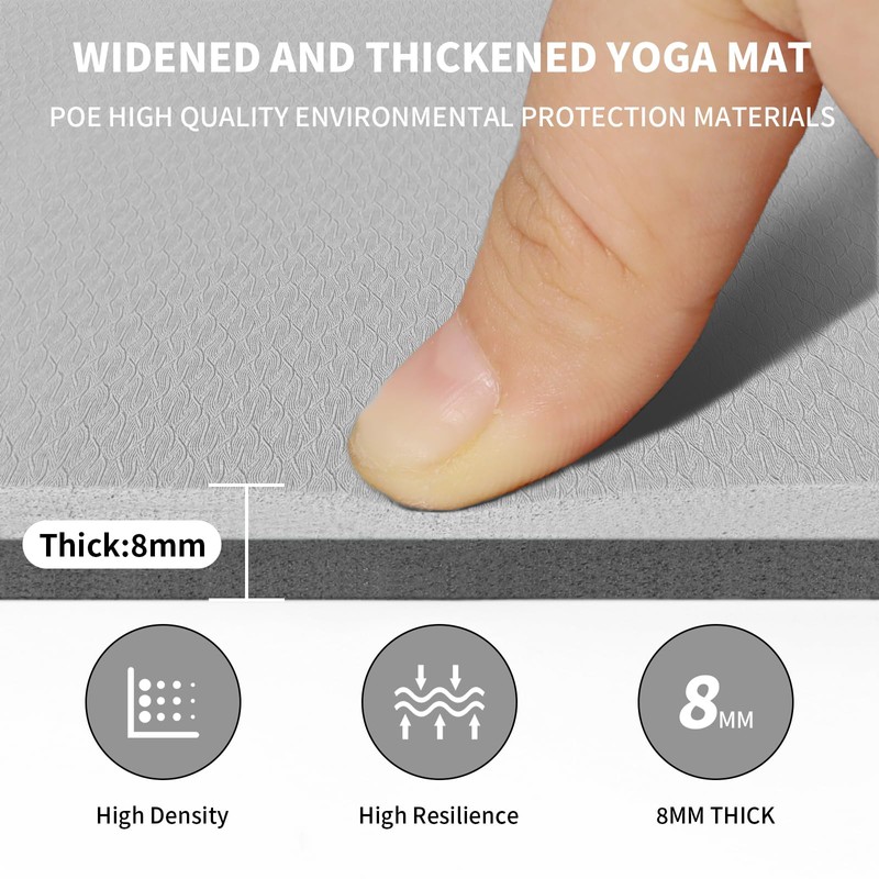 8mm Large Yoga Mat (6'x 4') - Extra Long and Wide 72 x 48 x 0.32 inches, Non-Slip POE Fitness Mat, Eco-Friendly, Thick Wide Exercise Mat for Home Workouts,Ideal for Yoga and Pilates.(Grey+Black)