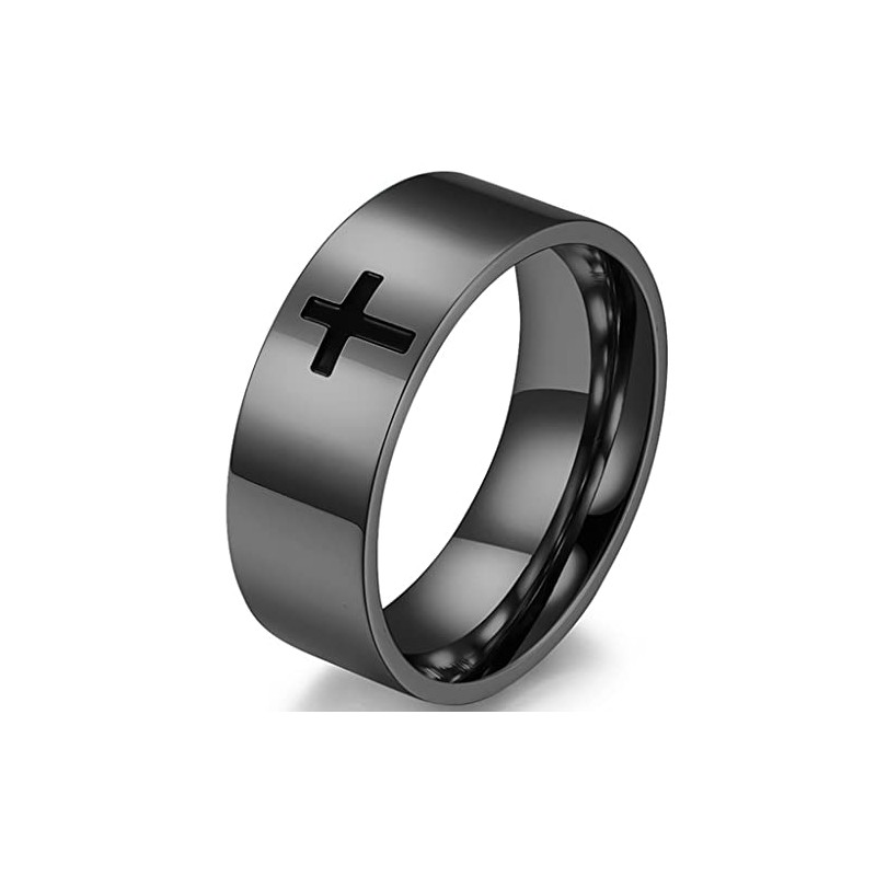 8mm Stainless Steel Classical Simple Plain Christian Cross Religious Wedding Band Ring (Black, 8)