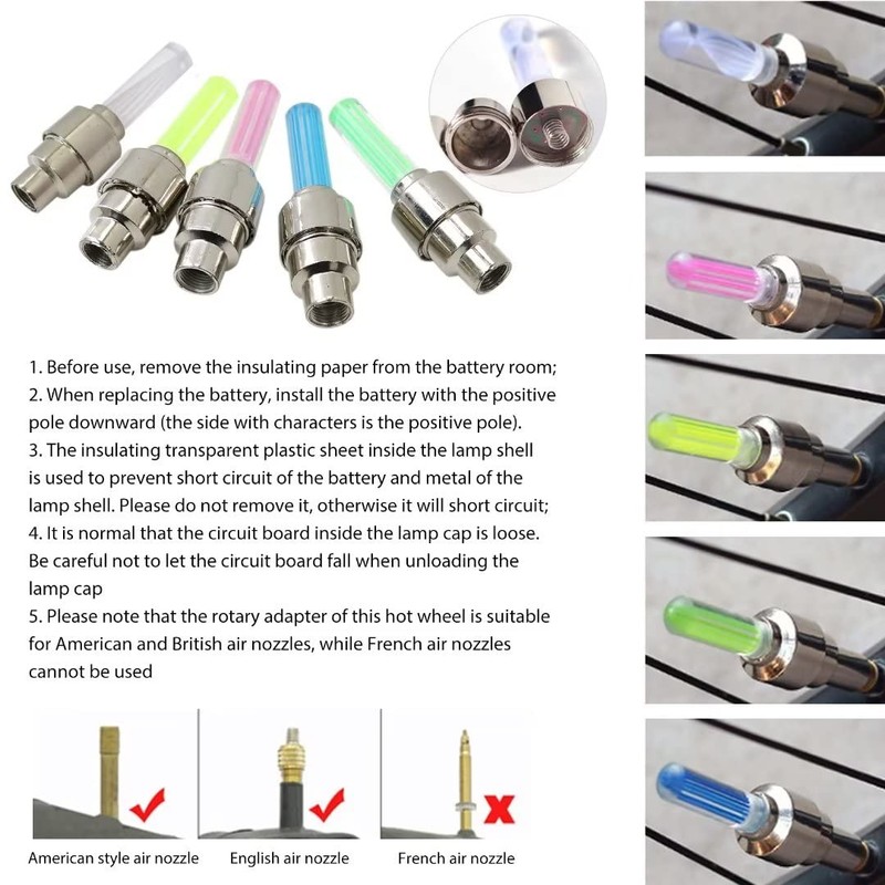 - ➤【Package Included】8pcs Multicolor Wheel valve lights;Please contact us if you received the part damaged or if the part you ordered did not fix your problem.We would like to ensure customer satisfaction for you.