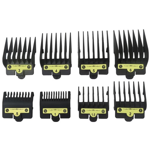 - SIZE: These clipper guide combs include 1/16 , 1/8 , 3/16 , 1/4 , 3/8, 1/2, 5/8, 3/4inch (#0.5, #1 , #1.5, #2,#3,#4,#5,#6),You will get 8 clipper attachments, each comes with a different length