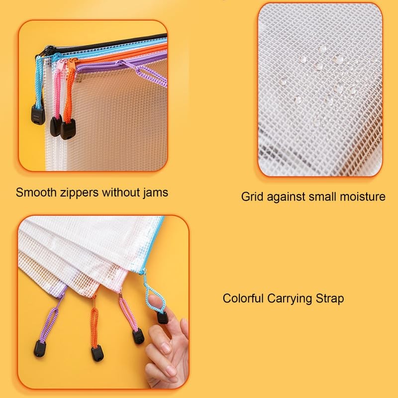 8PCS A5 Mesh Zipper Wallets,4 Colors Plastic Zip Wallets,Plastic Document Folders Zipper File Bag for Student,School,Office
