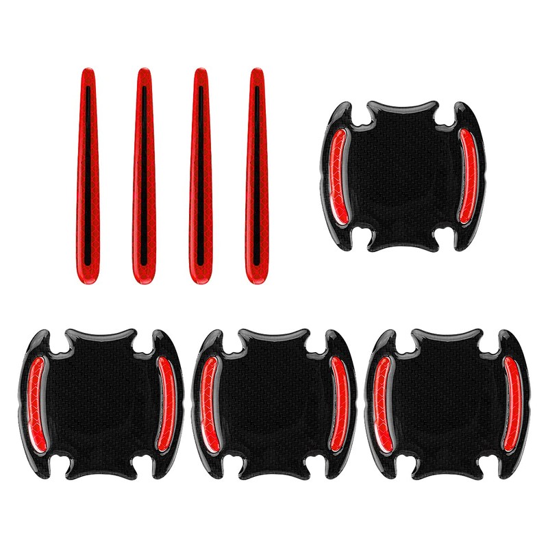 8Pcs Auto Door Handle Scratch Protection Cover, GLADFRESIT 3D Carbon Fiber Universal Car Door Cup Handle Paint Guard Film Reflective Strip (Red)