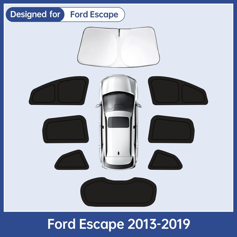 - 100% Custom Fit for Ford Escape 2013-2019: FSHAANY'S 8-piece car window shade set is precision-engineered to your car's exact window dimensions, delivering perfect coverage with no light gaps. The vehicle-specific design ensures flawless installation on windshield, side and rear windows