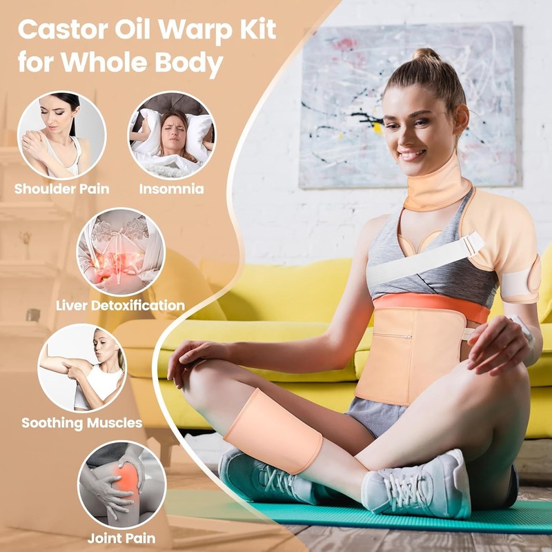 - Comprehensive Oil Pack Wrap Kit: Our 8pcs castor oil pack wrap kits for liver detox contain oil wraps for shoulder, neck, knee, thigh, arms and breast. The wrap pack kits can be used for all your body. It is a great value set.