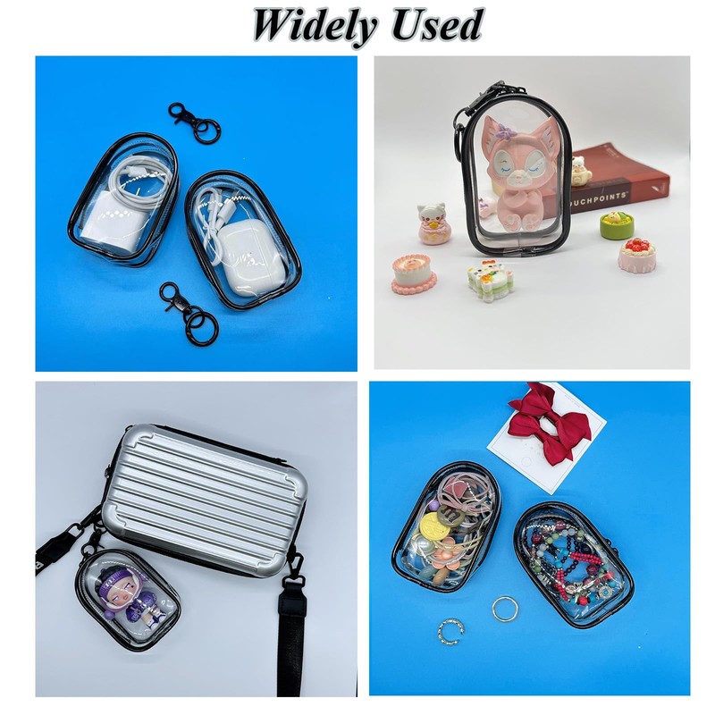 8PCS Clear Figure Display Bag with Keychain, Zipper Blind Box Bag Display Case Portable Figure Storage Bag, Hanging Blind Bag Great Carrying Doll Pouch for Mini Figure Collectors, Black & Clear