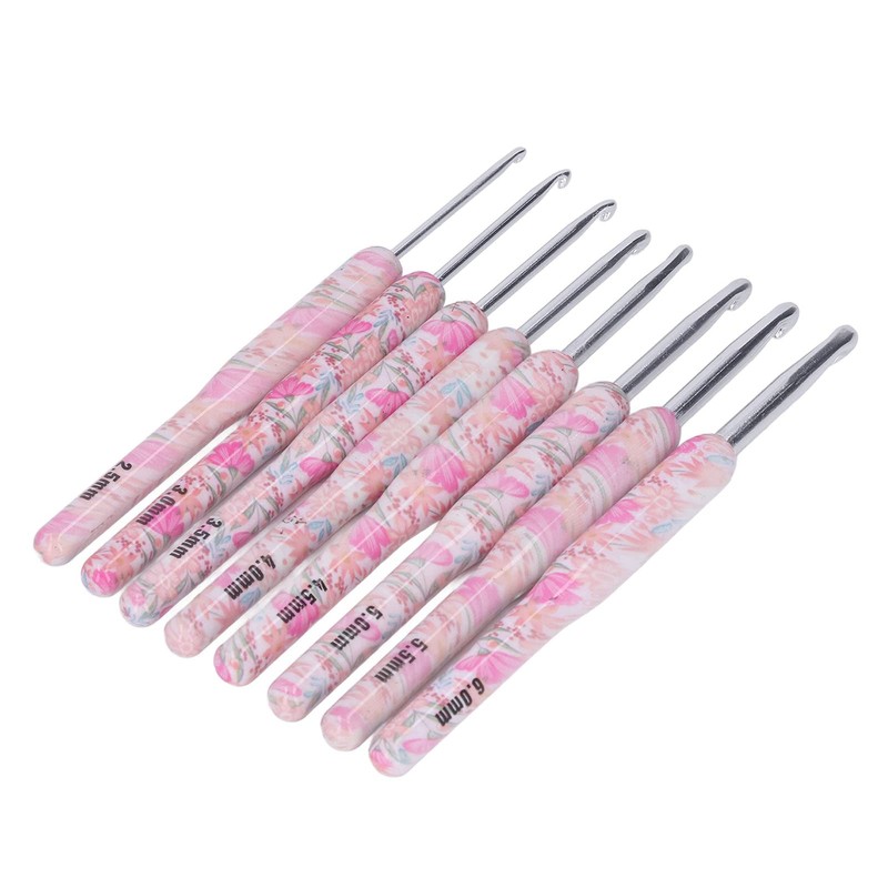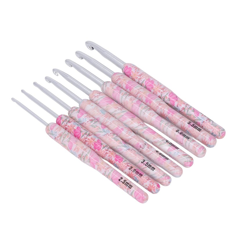 8Pcs Crochet Hook Set, Ergonomic Soft Grip Crochet Handles Yarn Knitting Needles for Arthritic Hand (Smash Flower)