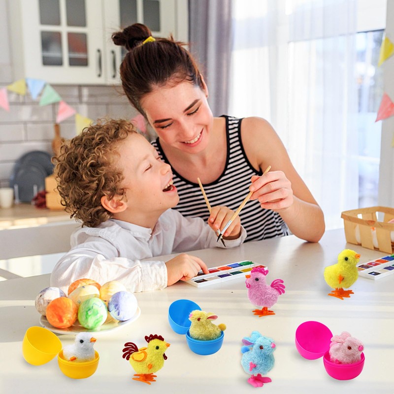 - Durable & safe material: Easter eggs are made of hard thick plastic, premium quality, and reusable, It doesn't have any bad odor. We have filled Easter eggs with wind-up bunnies and chicks, there's no need to spend hours filling every egg because we've done it for you.