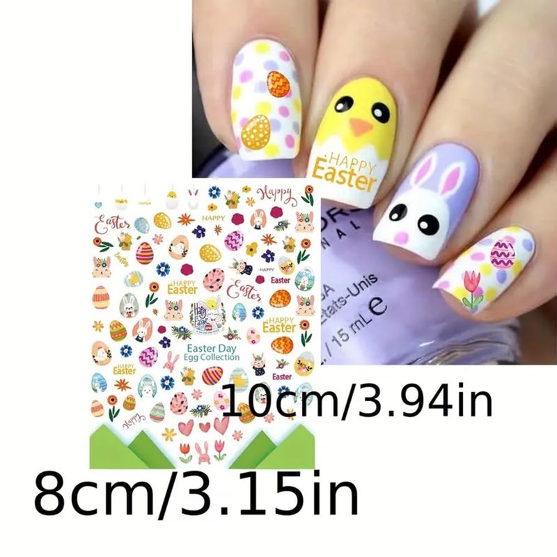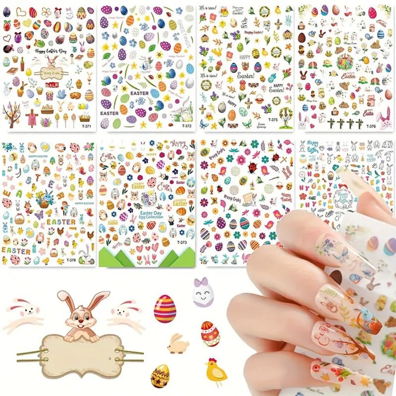 8 Sheets Easter bunny, eggs, chick, flower, wreath, green plant and so on nail stickers
