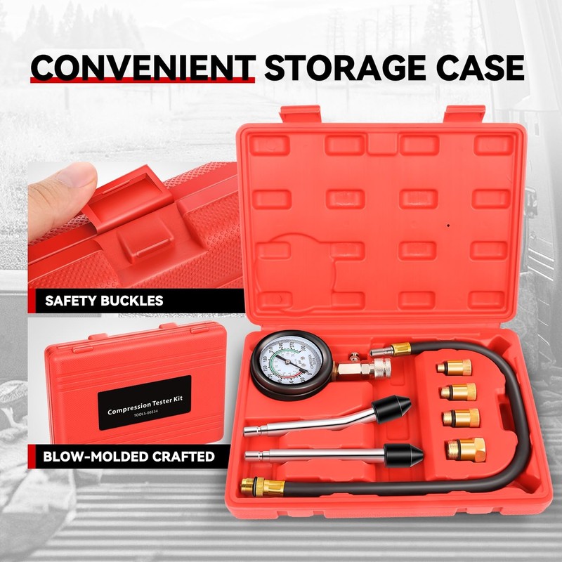 - Portable and Organized Storage: Keep your compression tester kit safe and organized with the included blow-molded hard case. Its durable construction ensures your tools are protected during storage and transportation, making it perfect for both professional mechanics and DIY enthusiasts alike.