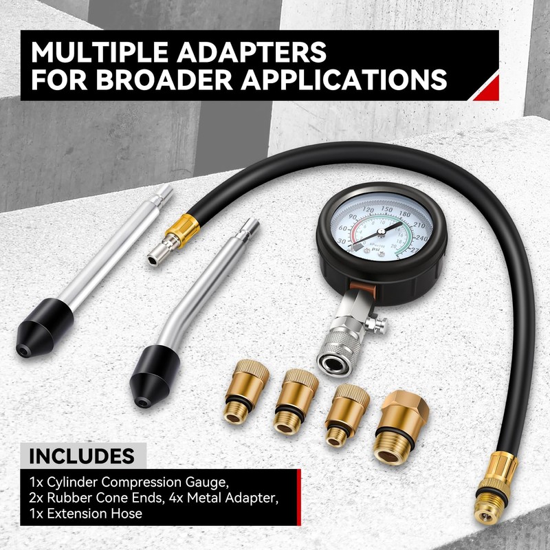 - Product Description - Universal multifunctional tool set, you can precisely measure cylinder pressure, ensuring your vehicle's engine is performing optimally and identifying potential issues early on.