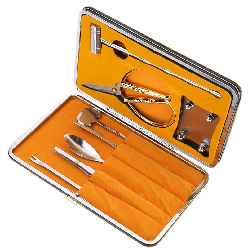 8PCS Lobster Crab Cracker Tools Stainless Steel Seafood Claw Set Cutting Hammer Spoon Scissors Axe Fork Tweezers with Gift Box