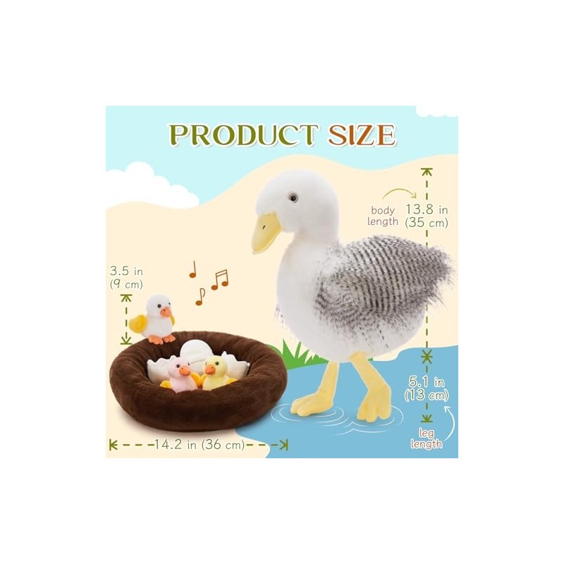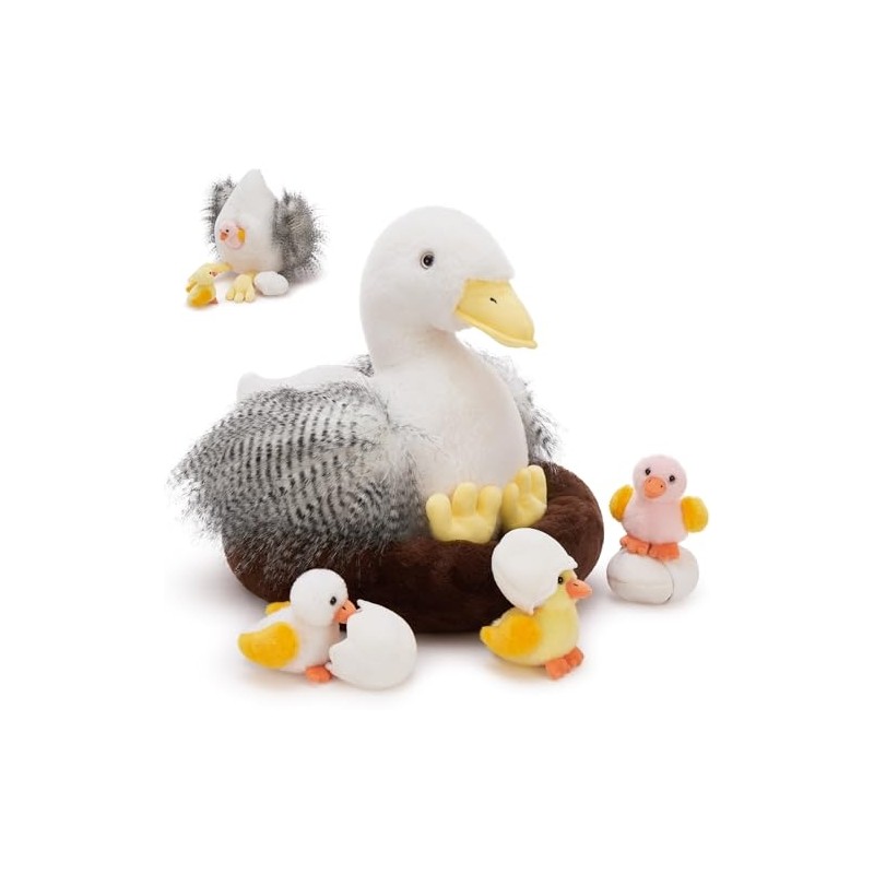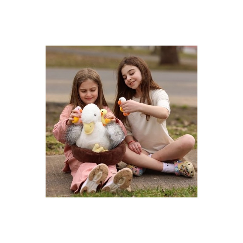 8Pcs Pekin Duck Stuffed Animals, Stuffed Big White Duck Plush Toy with 3 Baby Ducklings & 3 Eggs & 1 Nest, Duck Plush Set for Kids Girls Boys, Farm Animal Gift for Christmas Easter