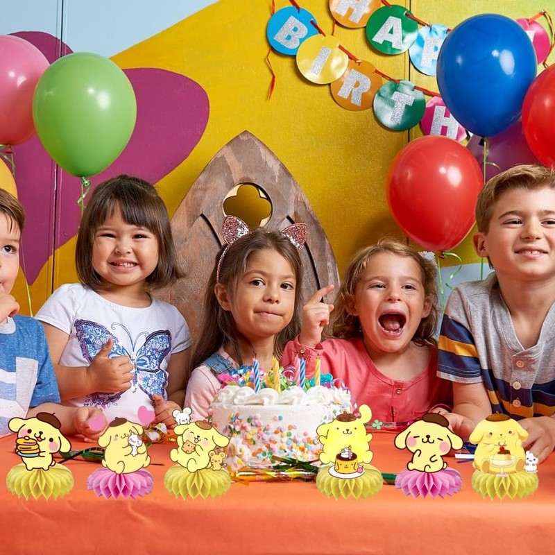 - Pompompurin honeycomb centerpiecesdecorations are suitable for children's parties, family gatherings, school recreational activities, or other decorations. Not only as a table decoration but also as a photo booth propns.