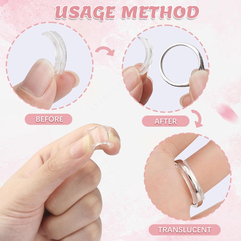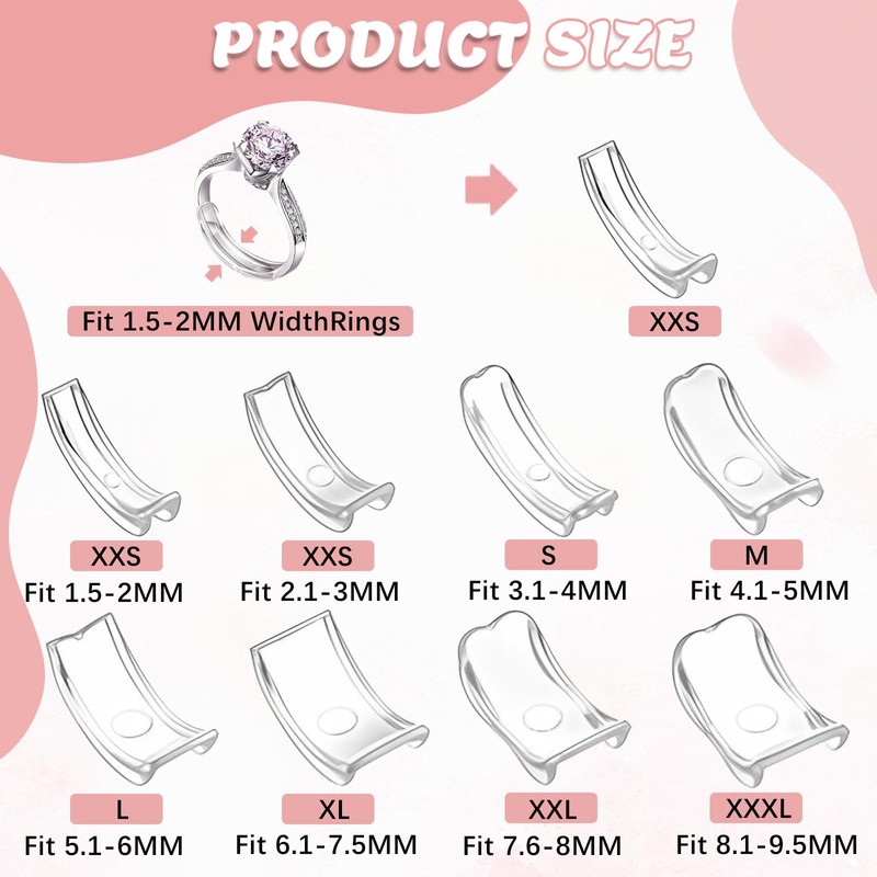 - Package Content: You will receive 8pcs Transparent Ring Size Adjuster. These adjusters are thoughtfully designed to cater to the varying size specifications of both men's and women's rings, making them a perfect solution for individuals experiencing weight loss or those who have purchased rings with inaccurate sizing.