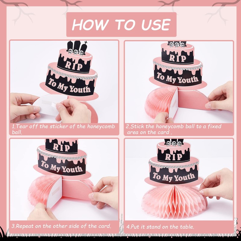 - 【Rip To My 20s Honeycomb Centerpieces】: Self-designed Funeral 3d Table Honeycomb Supplies with rip to my 20s,death to my twenties text and unique patterns will give you a impressive thirty birthday party.
