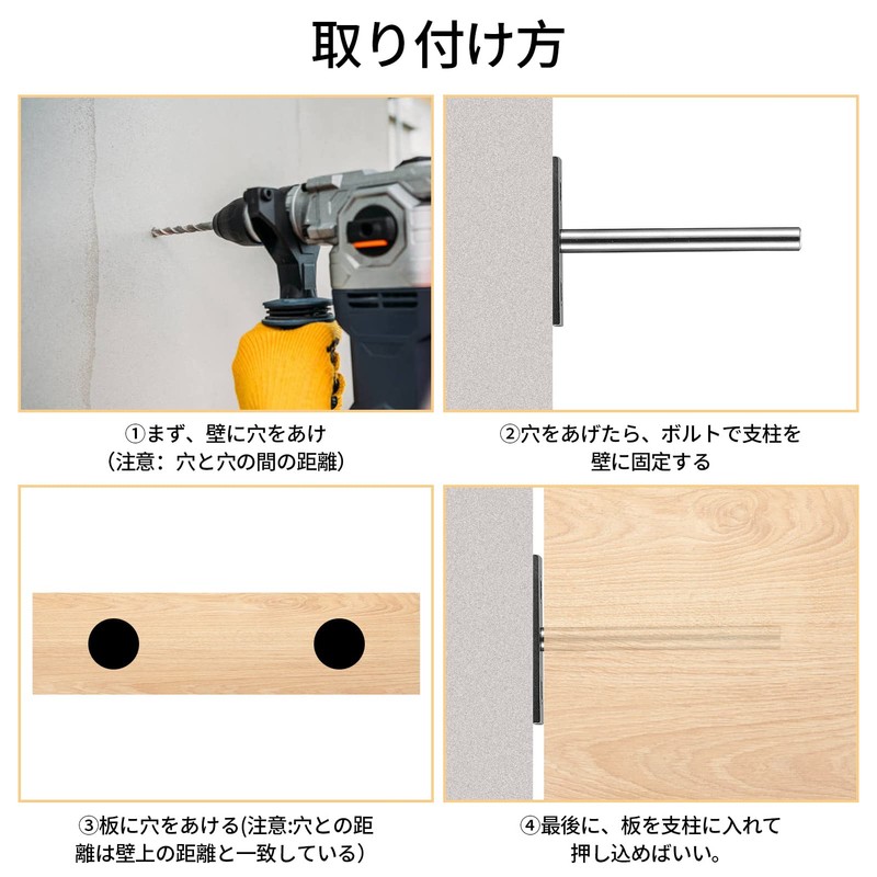 • Easy to install: 1. Determine the location and distance. 2. Drill two diameter holes on the board. 3.Then use the included screws to fix the bracket to the wall. 4.Finally, insert the slotted board into the bracket