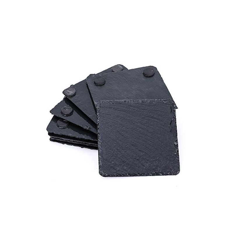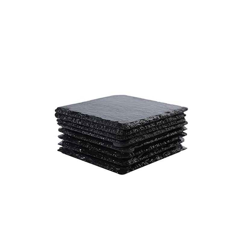 8pcs Square Black Slate Stone Coasters for Drink Bar Kitchen Home Natural Rough Edge