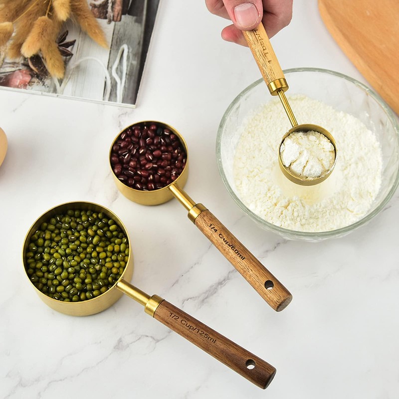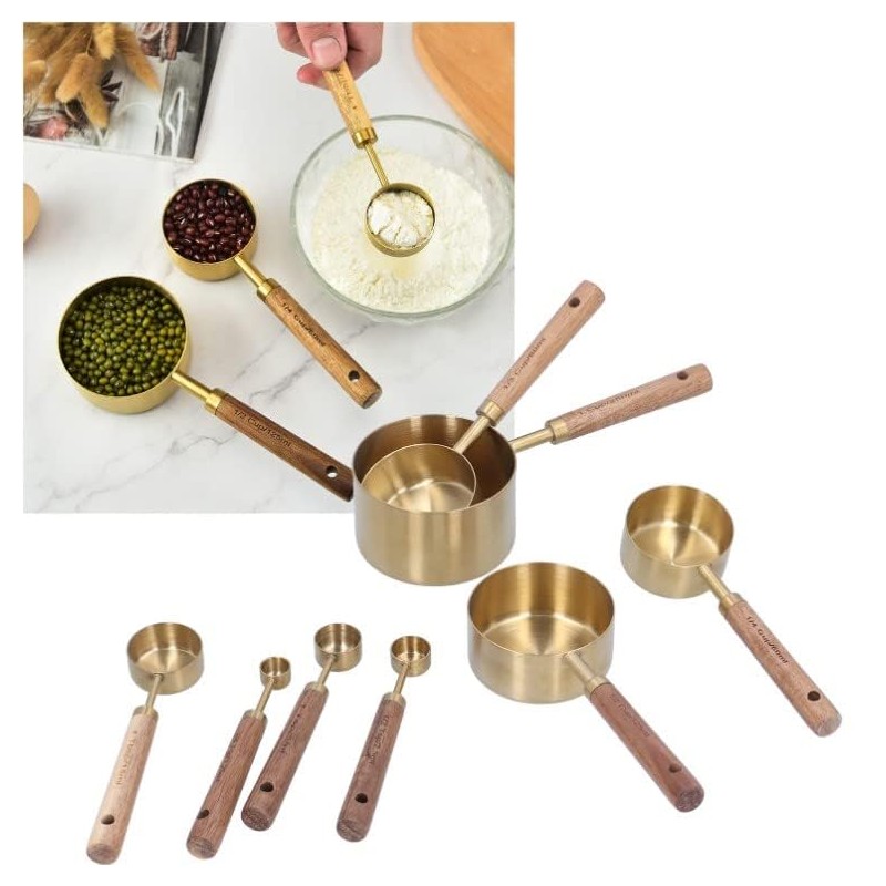 8Pcs Stainless Steel Gold Measuring Cups, Wood Measuring Cups Measuring Cups ...