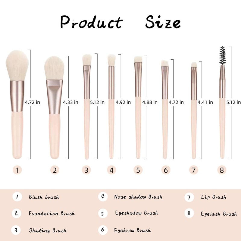 Packing list: 8 Pcs Travel Makeup Brush Set with Makeup Bag