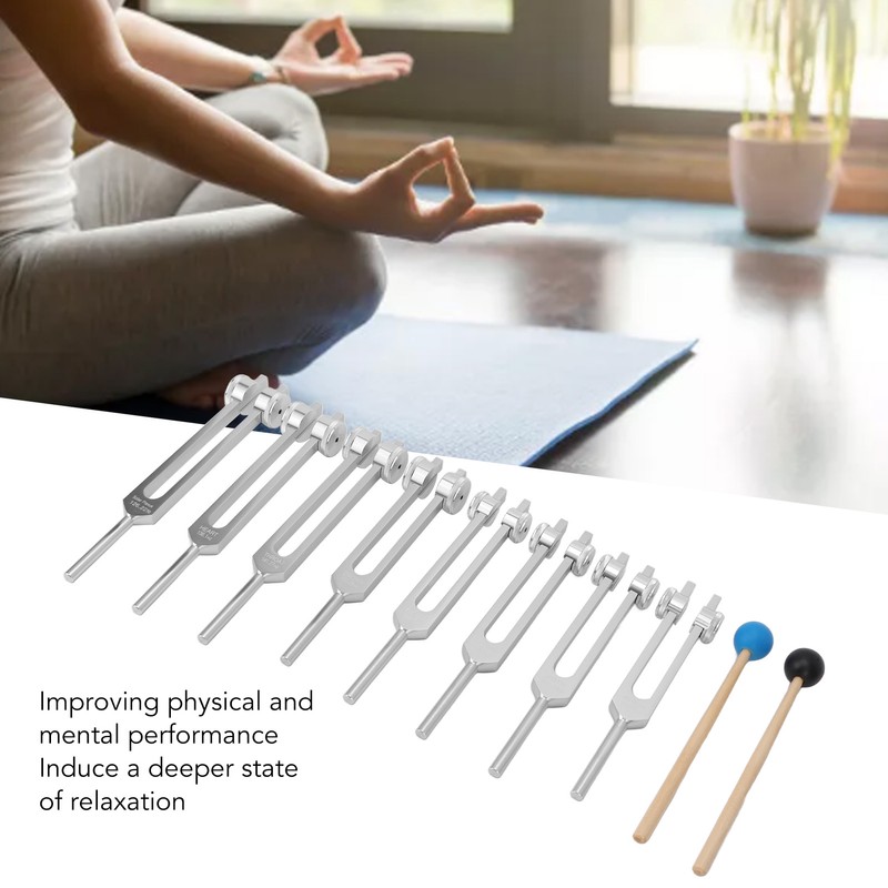 1、Combine To Use: Improve the effect of alternative treatment, tuning fork can be combined with meditation, massage and acupuncture point massage. 2、Cognitive Function: Tuning fork helps improve metal clarity, concentration and cognitive function, improving physical and mental performance, simple and practical. 3、Promote Relaxation: Tuning fork helps to induce a deeper state of relaxation, refreshing the mind, can restore the balance of the body chakra, suitable for men and women. 4、Tuning Fork Set: 8pcs of healing tuning fork, include frequency 126.22Hz, 136.1Hz, 141.27Hz, 172.06Hz, 210.42Hz, 194.18Hz, 221.23Hz, 272.20Hz, reliable for use. 5、Tool Kit: Comes with sound hammer and cleaning cloth, meet your different needs. With storage bag, easy to carry, perfect for home, meditation room, etc.