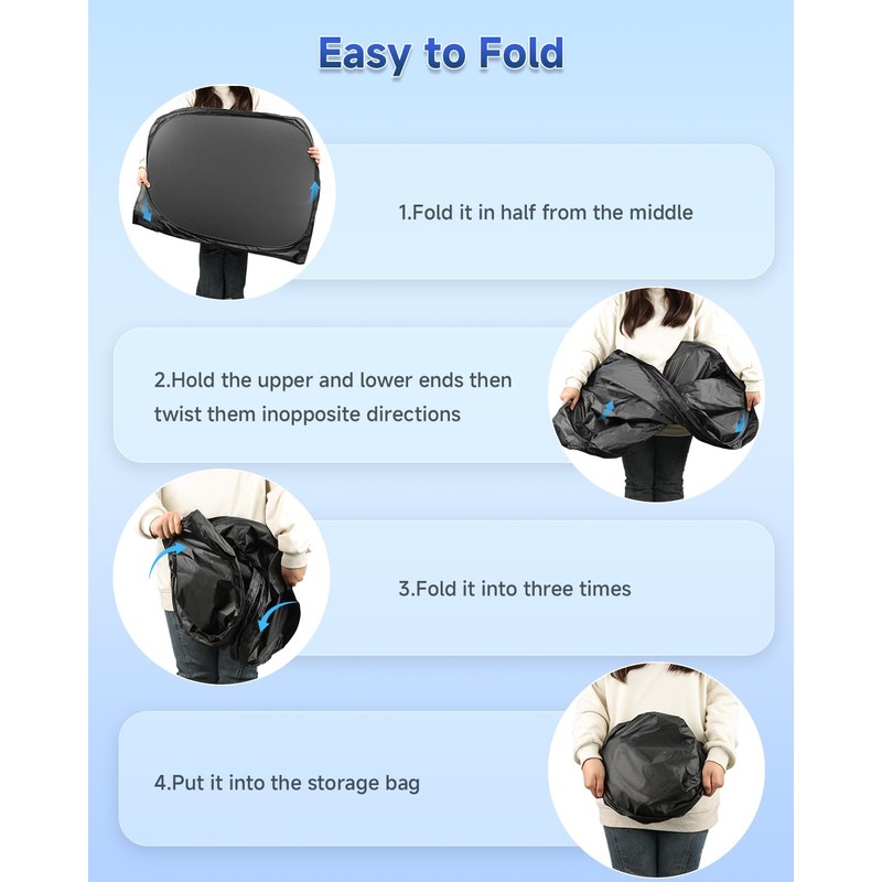 - 【Superior Heat Insulation & Cooling】 Dual-layer high-density fabric with UV reflective coating blocks 99% of harmful UV rays, reducing interior temperature by up to 40°F. Helps minimize air conditioning use, saving energy while keeping your car cool and comfortable. Also reduces glare and insect intrusion.