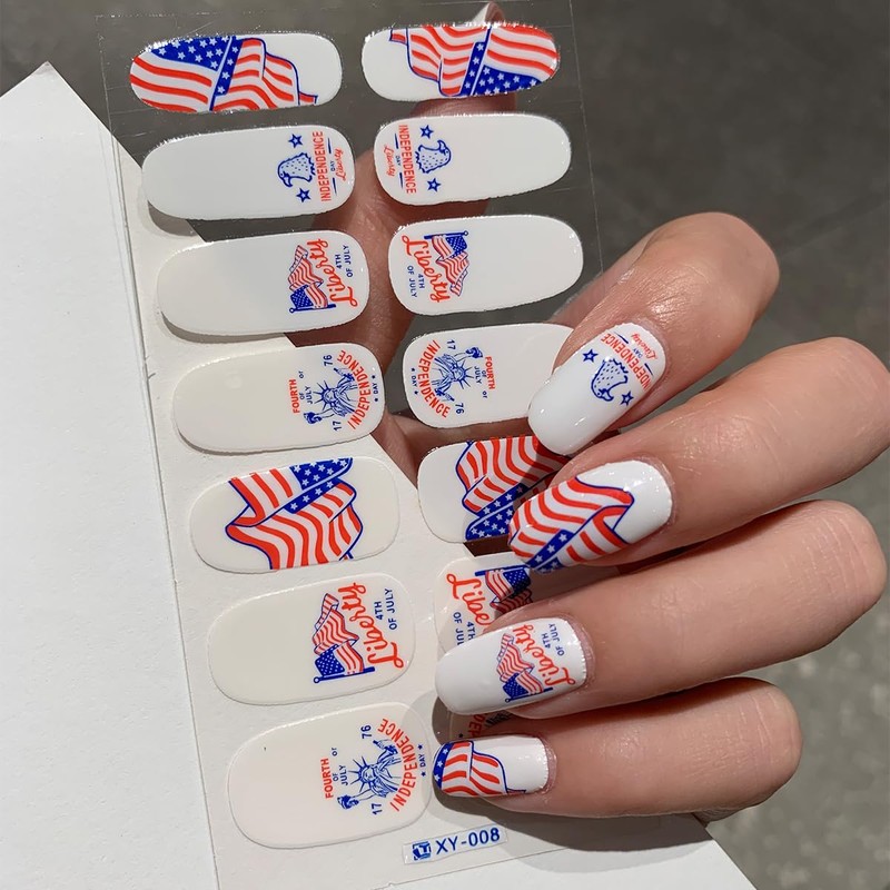 - 【Widely Applications】 The patriotic full wrap nail strips decals can decorate your nails, false nails, acrylic nails, and more, they can be combined with nail polish, you can apply them to embellish your nails for various occasions, like dating, wedding, party, working, gathering, etc. also suitable for Christmas, Valentine's Day, Thanksgiving Day, Independence Day and other festivals.