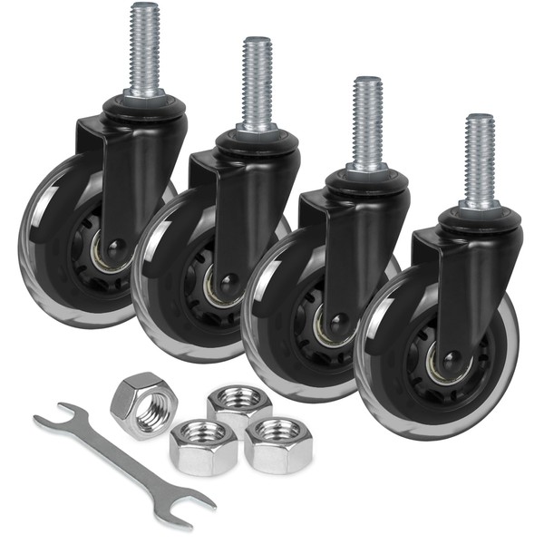- 【Smooth & No Noise】Made of Polyurethane and Steel, roll quiet and no scratch on floor, PU rubber wheel will keep quiet movement on hard wood floor without scratch,wear-resistant and no noise.