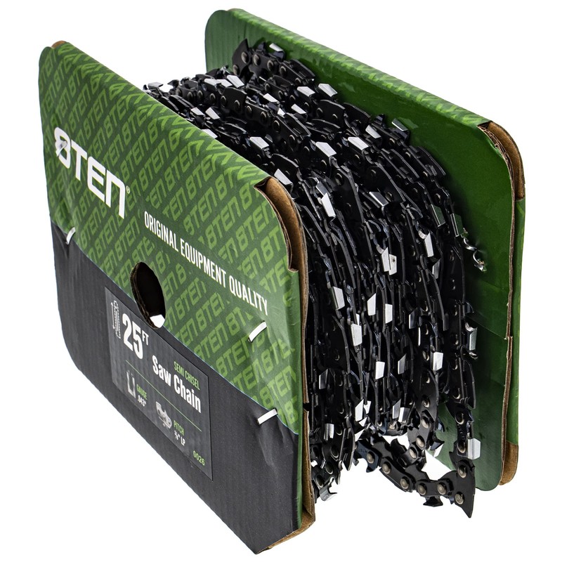 8TEN Chainsaw Chain Bulk Reel Semi Chisel 25 Foot .043 Gauge 3/8 Pitch Low Pr...