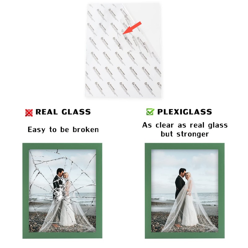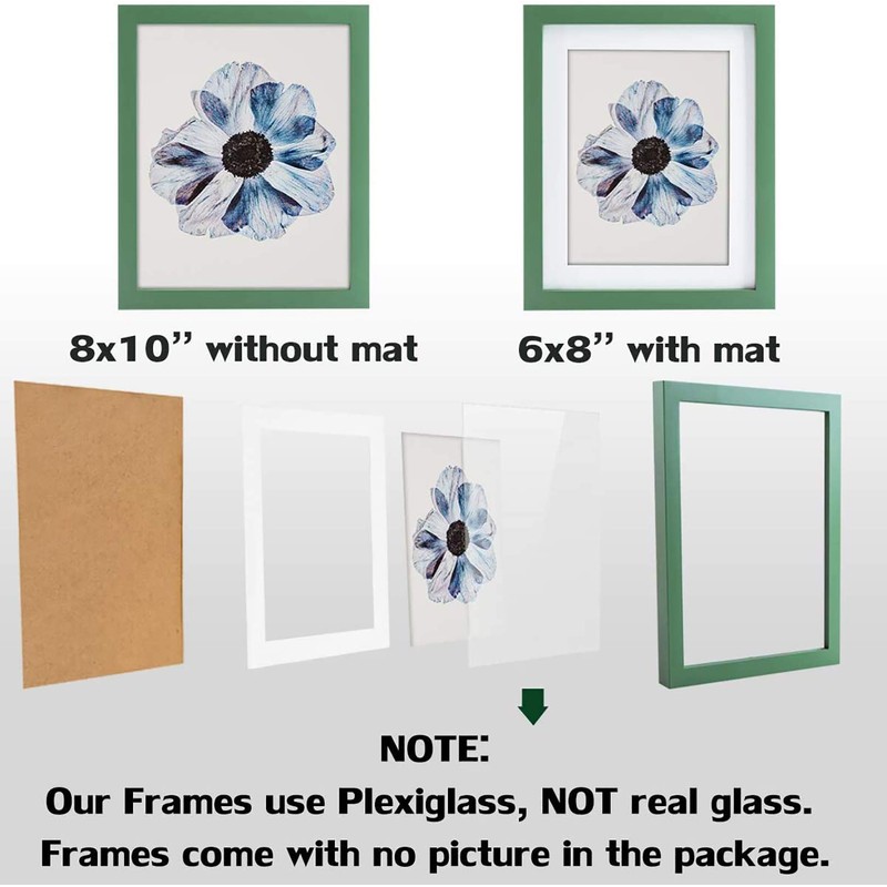 - 4 Pack 8 x 10 Green Picture Frames: Display pictures 6 x 8 inch with mat or 8 x 10 inch without mat. Mat include.