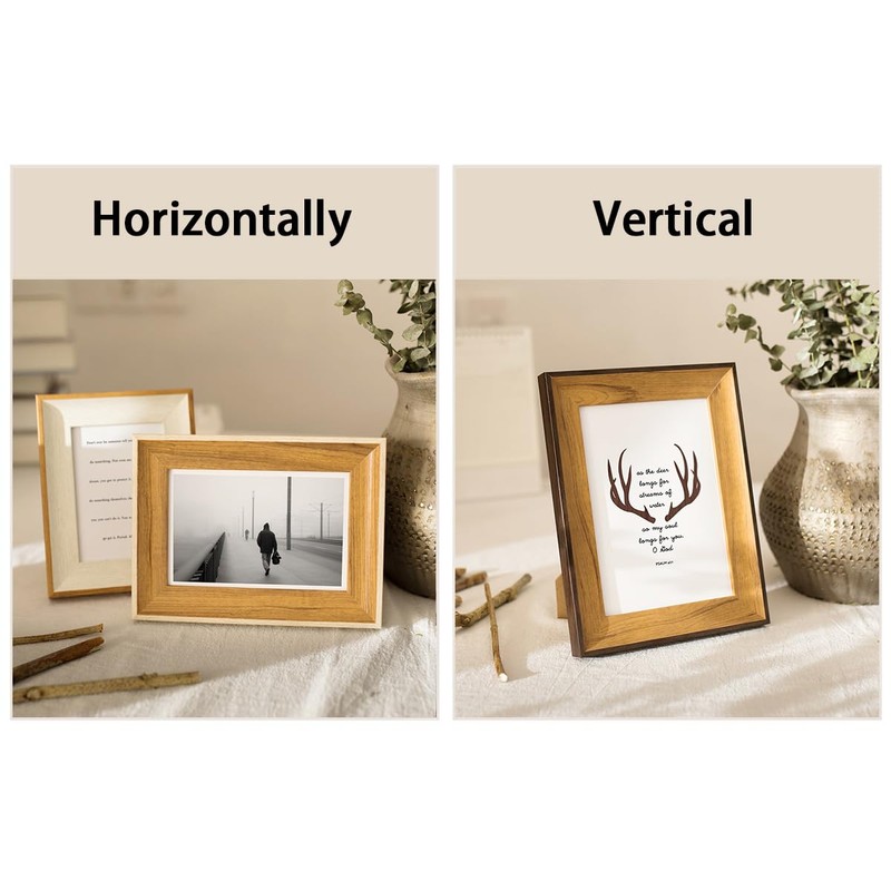 - 🖼 Frame Size: Picture frames 6x4. Made to fits 5inch/6inch/7inch/8inch/10inch/A4 pictures, this frame can be displayed on a shelf, bookcase, table, or office desk. The suitable angle of inclination is perfect for displaying your items on desk and shelf, show your happy moment and improve the happiness of life.