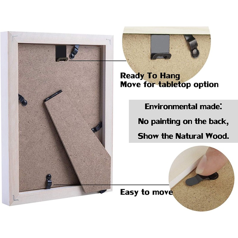 8x10 White Picture Frames Nature Solid Wood 6 Pack for Wall Mounting and Tabletop Display