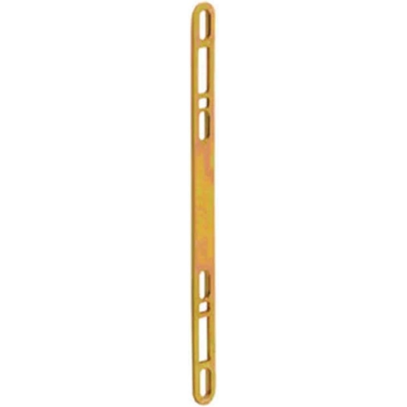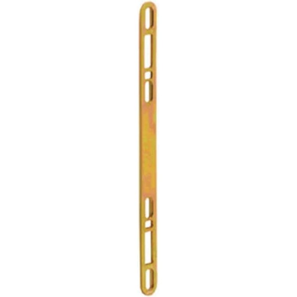 • FACEPLATE: Flat Double Hole Strike. Overall Length: 10 -1/8 in. Width: 3/4 Thickness: 1/8 in. Material: Yellow Dichromate Steel. Slotted Holes for screws (No screws), Rectangular Hole for Mortise Latch. Used on Wood and Vinyl Sliding doors.