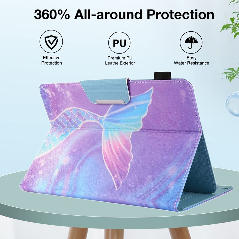 9.5-10.5 inch Tablet Case, Universal Protective Cover Stand Folio Case for 9 10 10.1 Inch Android Touchscreen Tablet, Mermaid