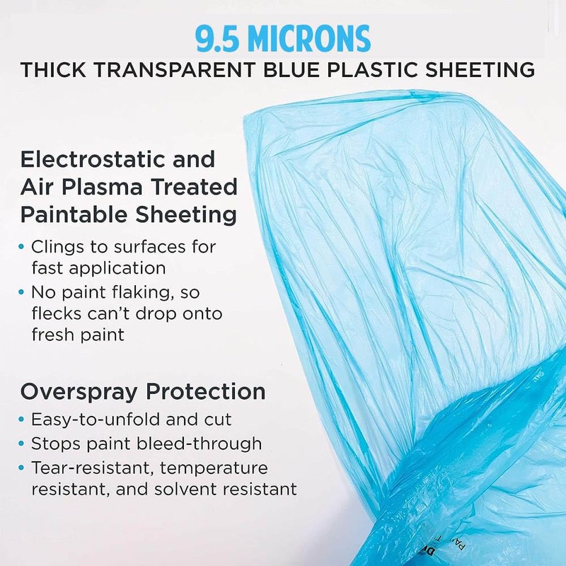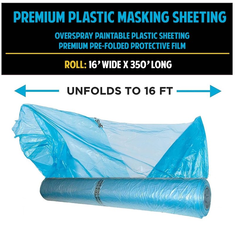 9.5 Micron Premium Plastic Masking Sheeting for Auto Body Paint 16 ft x 350 ft