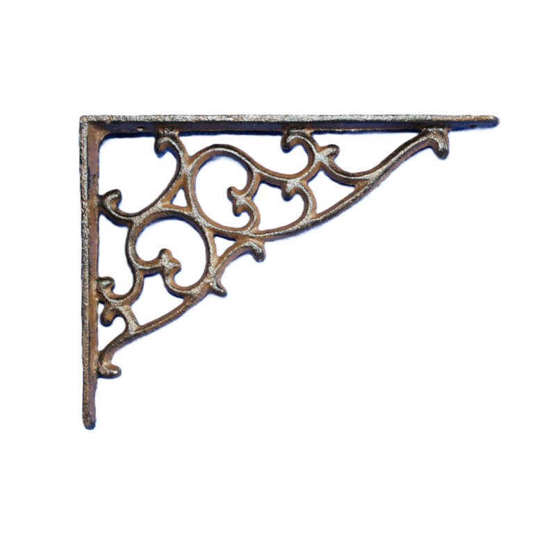 9 - Decorative Cast Iron Shelf Bracket, Victorian Scroll Design, Antique Brown, Wall Mounted Corner Support B-01