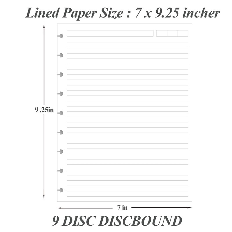 9-Disc Discbound Lined Refill Paper, Classic Size Pre-punched Happy Planners Inserts, 100Sheets/200Pages Loose-Leaf Paper, 100gsm White Paper, 7" x 9.25"