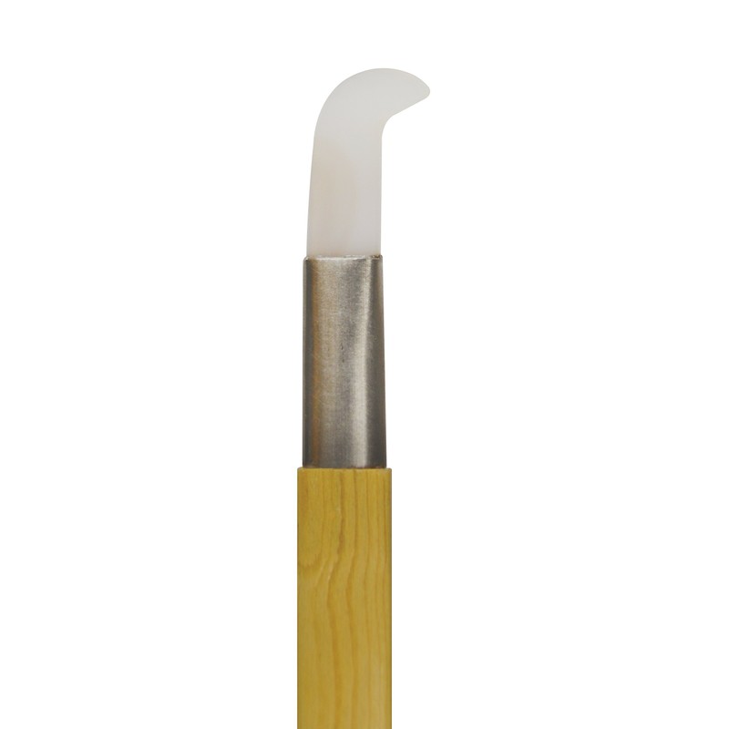 - Features a curved "flame"/hockey shaped tip