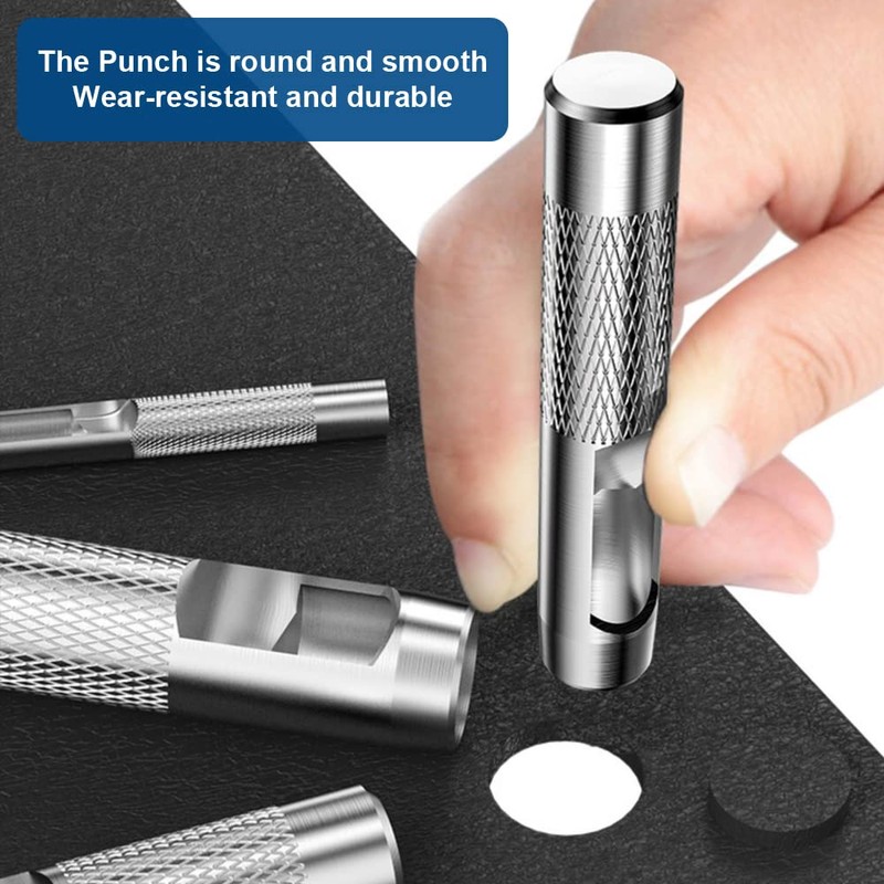 - Easy to use and store: the round hole punch set is easy to use, simply tap the end of the tool with a hammer and a hole is punched through the opening, and leather punch set comes with a fabric bag for easier carrying and storage.