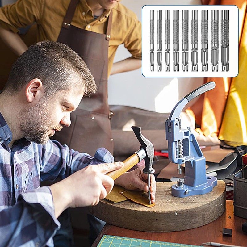 - 9 practical sizes: the punch set contains 9 different sizes of leather craft punching tools, 2.5 mm, 3 mm, 4 mm, 5 mm, 6 mm, 7 mm, 8 mm, 9 mm and 10 mm, each with a marked size on the top of the punch to help you distinguish. The different sizes are available to meet your different needs.