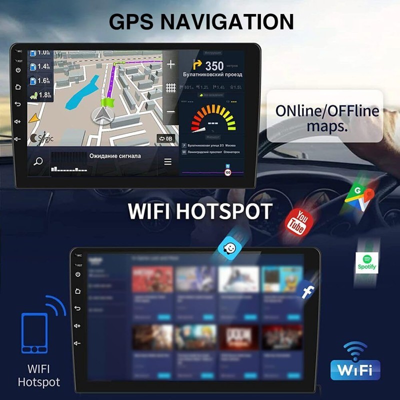 • 【 WIFI、Bluetooth、GPS、Navigation】The radio supports WIFI and Mobile Hot-spots. And the radio built-in Bluetooth 5.0, which supports hands free call, phone book download and music play. After connected to WiFi, online map also be supported. You can use GPS Navigation at anywhere.